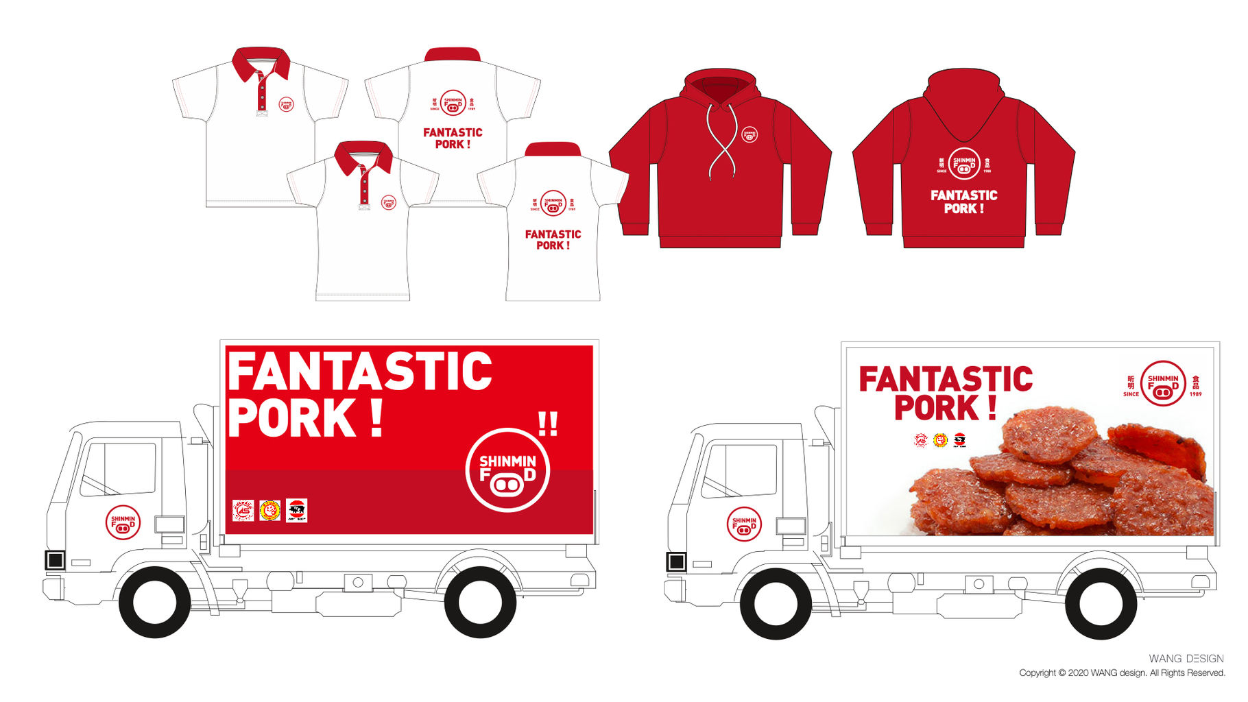 長期作為肉商即食加工食品的昕明食品,擁有渾厚的加工技術,由B2B的產業模式轉型成B2C自家品牌。以羅馬拼音SHIMIN FOOD轉換成豬的意象並圖騰化,貫穿整個品牌視覺,延伸出對內及對外的應用設計,小則名片、信封設計,大則庶務用品整體規劃及制服、車體廣告設計。